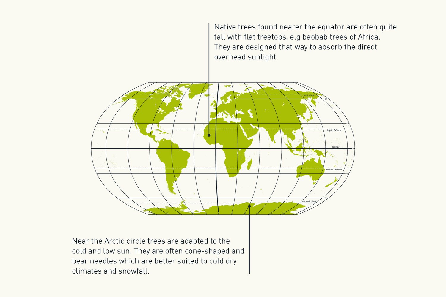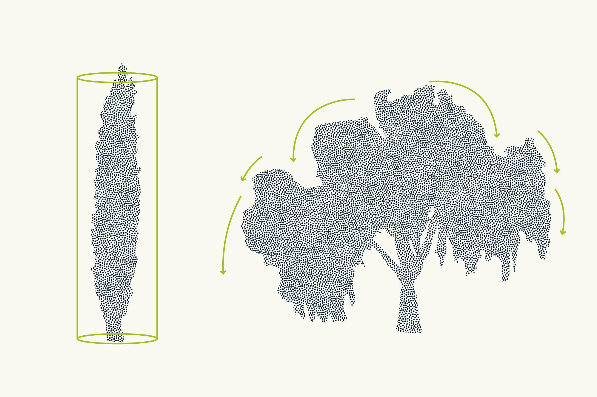 The shape and size of a particular tree is largely influenced by its specific requirements for growth, alongside environmental factors and evolutionary adaptations. Water and light are essential for trees, both elements impact the tree height, crown shape, and the form of leaves.