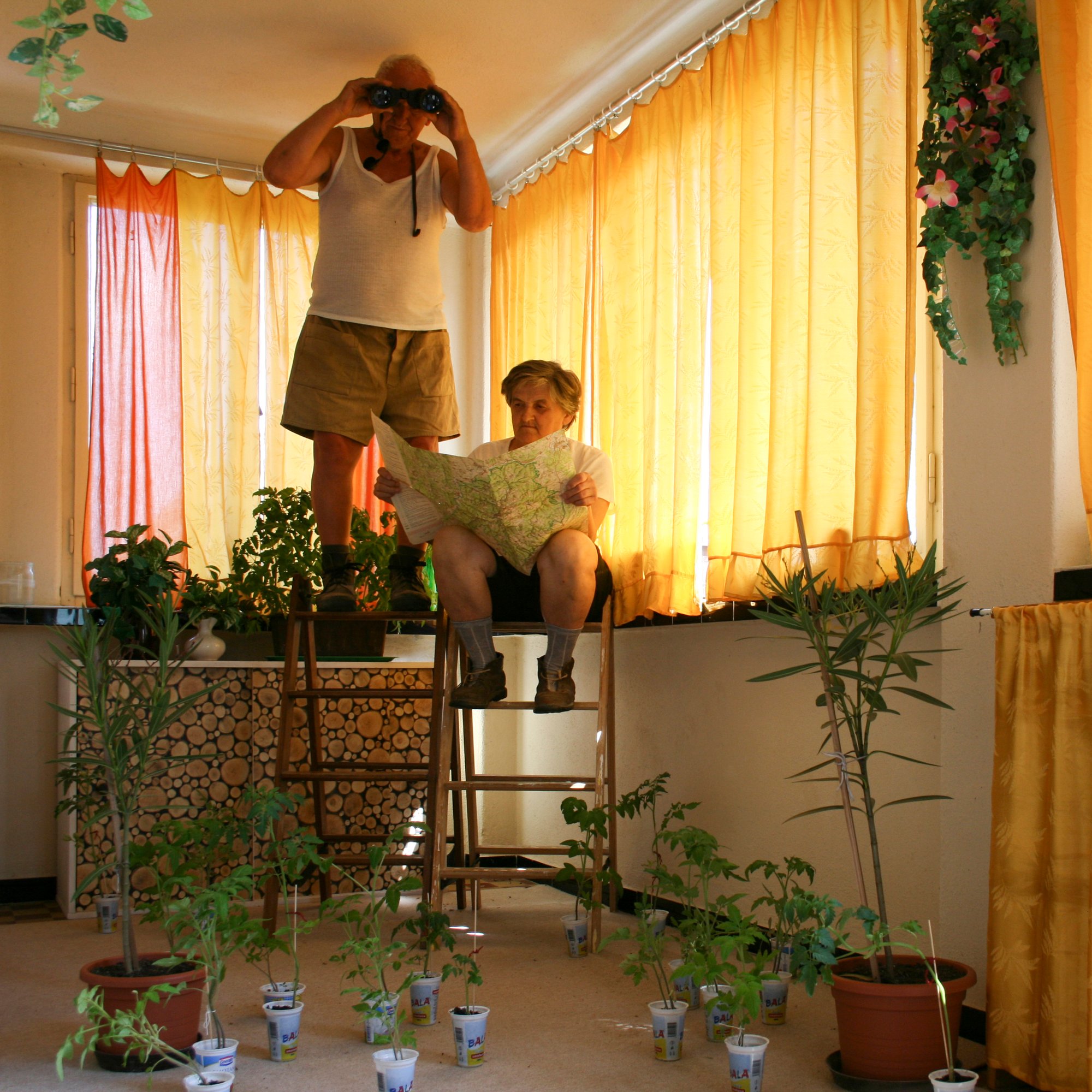 Pustaiova’s project “Trip to the Mountains” is a simple story about a trip her grandparents took to the mountains. They have never had neither money nor the energy for traveling, so Pustaiova brought this “trip” directly to their house. In this series, Pustaiova’s grandparents went camping, hiking, and relaxing without leaving their comfort zone.