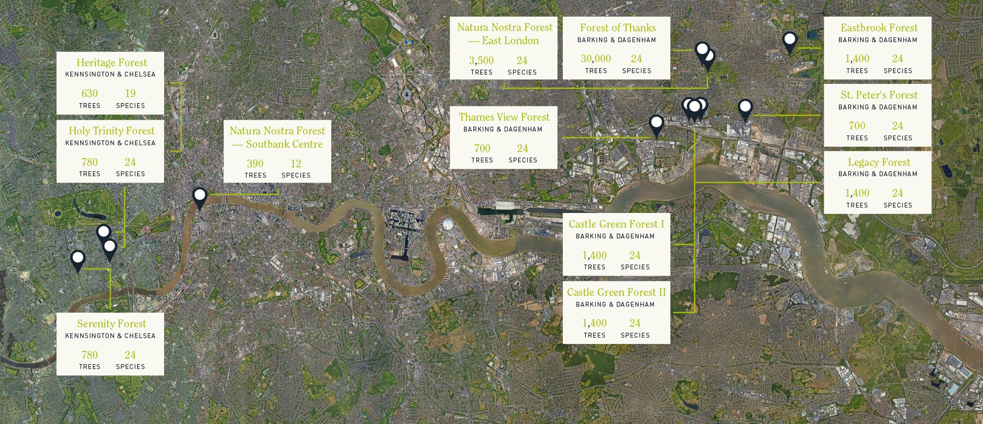 In London, with the help of local councils, communities, and institutions, we’ve planted 12 Pocket Forests, including the UK and Europe's largest Miyawaki Forest in Barking and Dagenham. Over 20 pocket forests will be planted in London in the Fall, including the 15 just announced in the Borough of Newham.