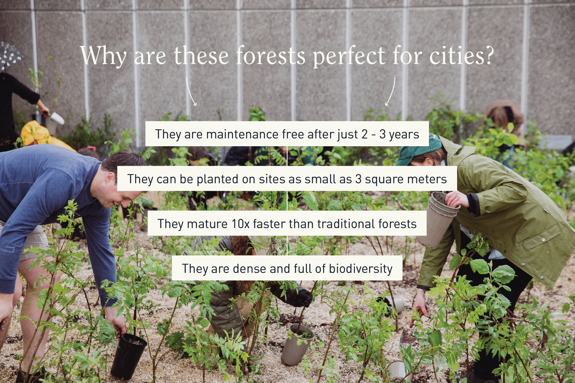 Our pocket forests address multiple urban challenges, including biodiversity loss, air pollution, heat island effect, flooding, community wellbeing, and aesthetics.