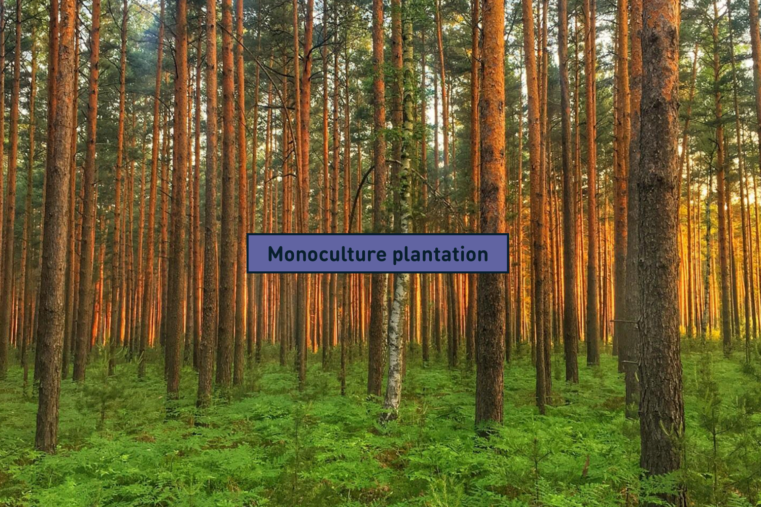 A forest would not be a forest without this highly complex interconnected web of relationships. By contrast, a monoculture plantation contains just one species. But the presence of just one tree simply doesn’t provide enough habitat for biodiversity to thrive, and without this biodiversity, there will not be enough balance of life for an ecosystem to function at its optimum.