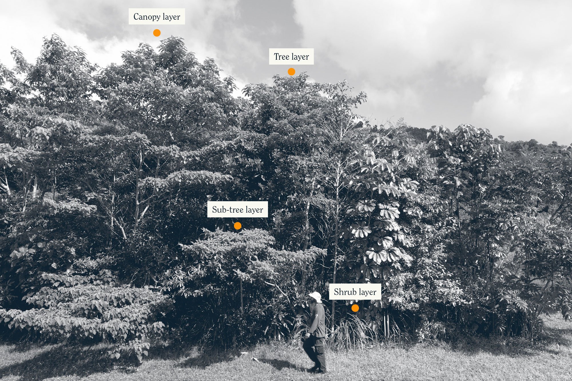 After a thorough survey of the site, extensive research is carried out with the local community to identify potential natural vegetation. Just like all forests are complex networks of living organisms, Miyawaki forests are built on four layers of vegetation: canopy trees, trees, sub-trees and shrubs. This layering effect bolsters a resilient green wall featuring up to 40 different species to create balance.
