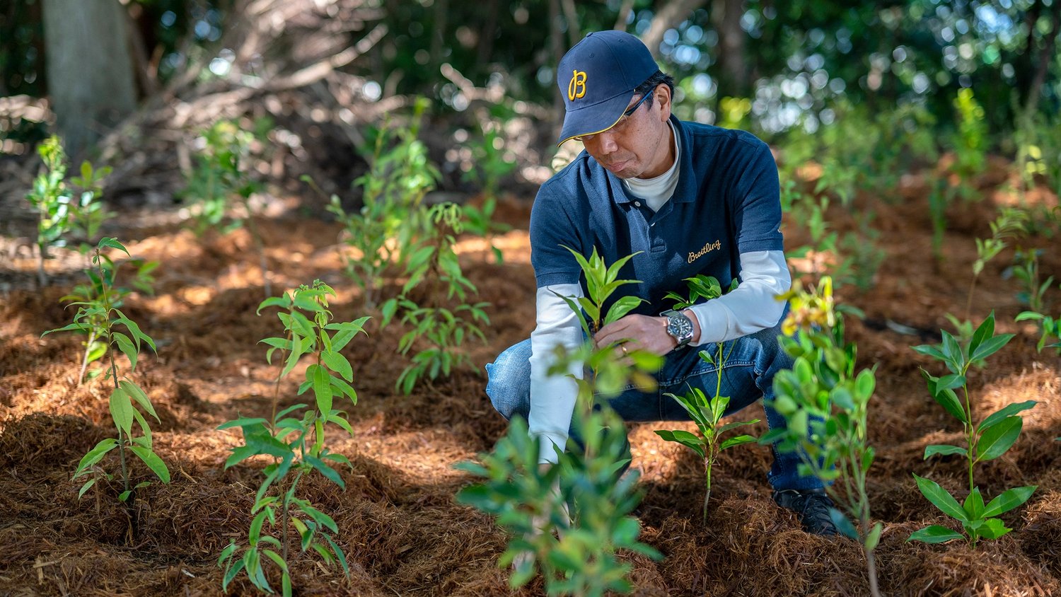After reading Chinju no mori, we invited Shinichi Meguro, chief researcher of IGES-JISE (Japanese Center for International Studies in Ecology) to research the forest that surrounds our facilities and found it had been an ancient woodland 9,000 years ago.