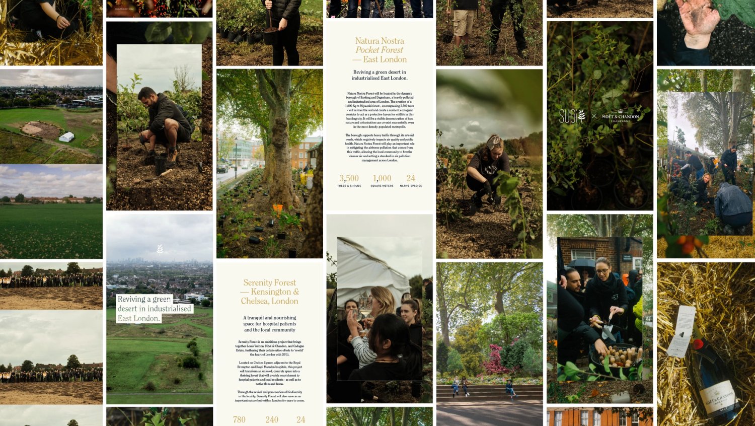 Serenity Forest is an ambitious project that brings together Louis Vuitton, Möet & Chandon, and Cadogan Estate, furthering their collaborative efforts to ‘rewild’ the heart of London with SUGi.