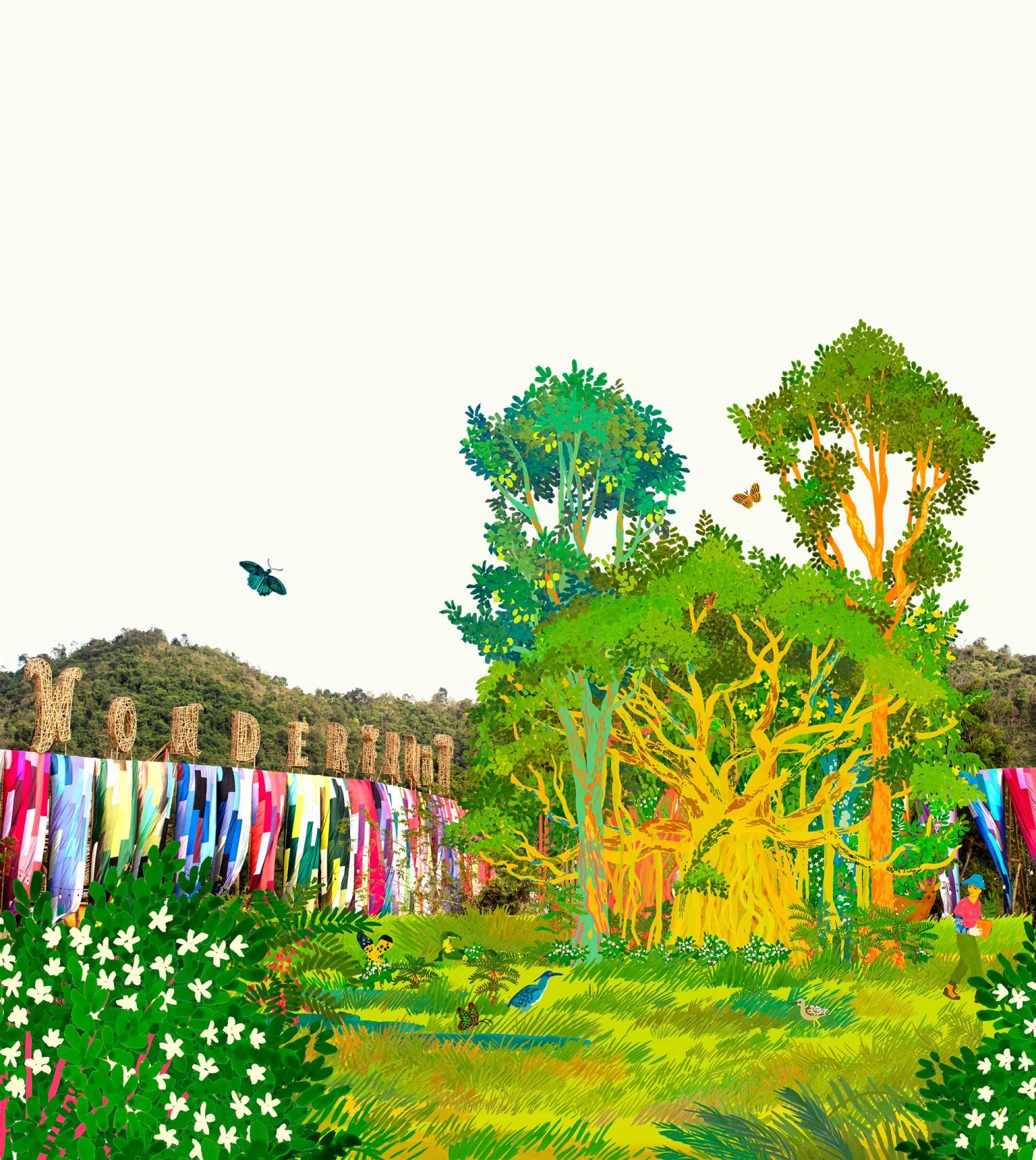 Wonderfruit takes place in the province of Chonburi and Khao Khieo is the last remaining area of primary forest in the district. Now protected, it was once a vast wilderness. The area is formed from several different types of forest from the lowland tropical up to the mountainous cloud forests that cover the two dominant mountains. By using what remains as a reference forest, Ancestral Forest will replicate the true forest ancestry of the region.