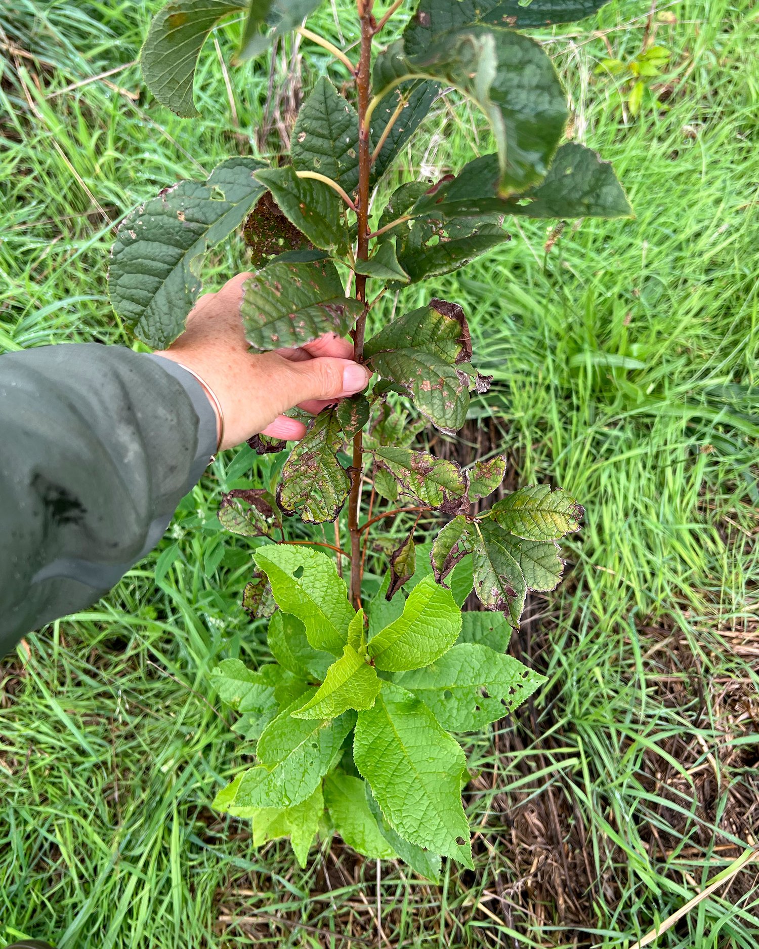 Despite the severe watering restrictions, we managed to water the forest three times during the drought. Still, the forest has been visibly affected by the heat and sun. That said, we can see that the damaged saplings are re-sprouting. The range in survival rate is connected to this; we need to wait until spring 2023 to really see how many saplings fully recover.