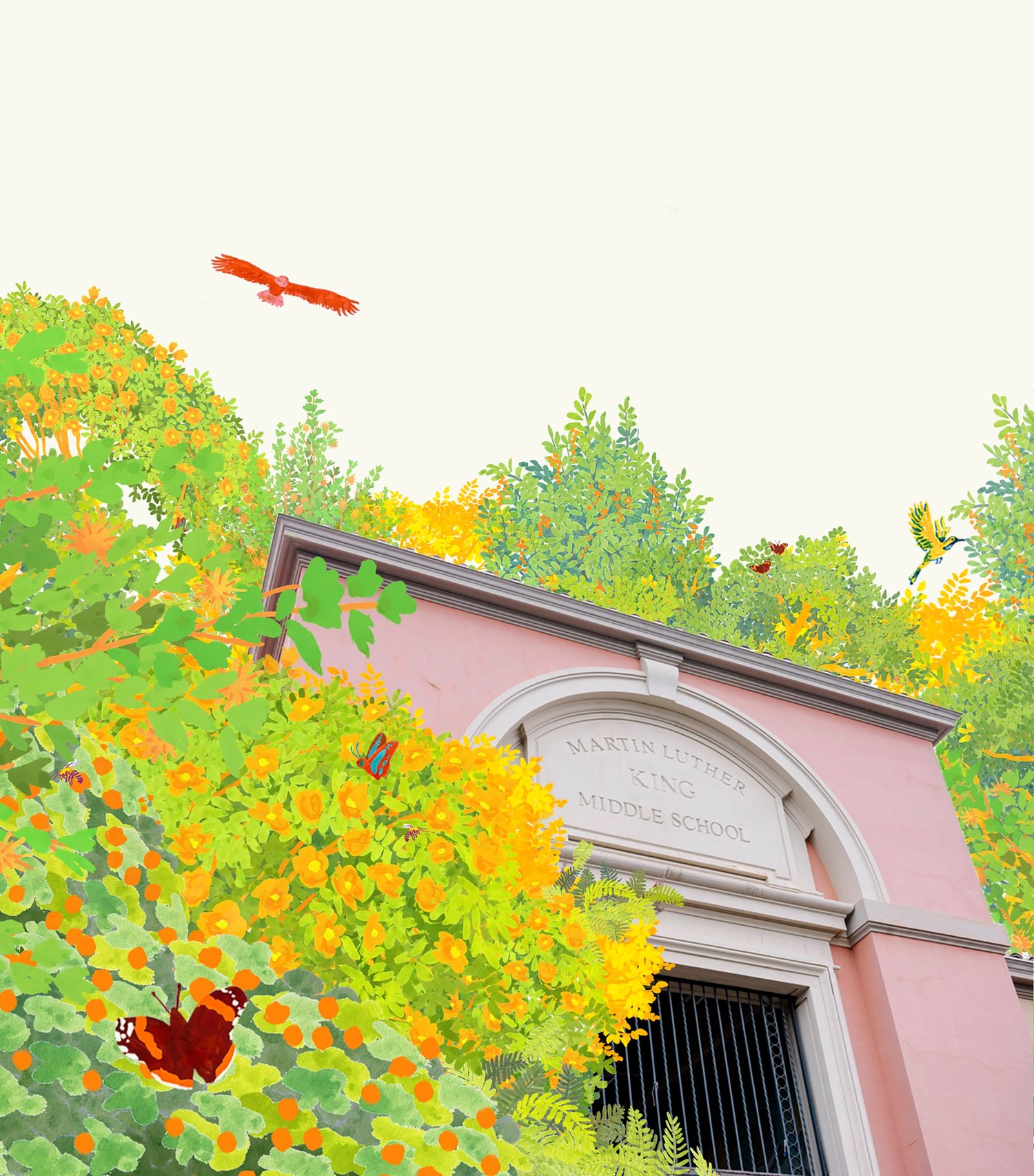 Students at MLK Middle School will not only benefit from the direct health effects of urban forests, but learning in nature improves a child’s behaviour, helps them build stronger relationships, reduces stress and anger, and heightens curiosity.