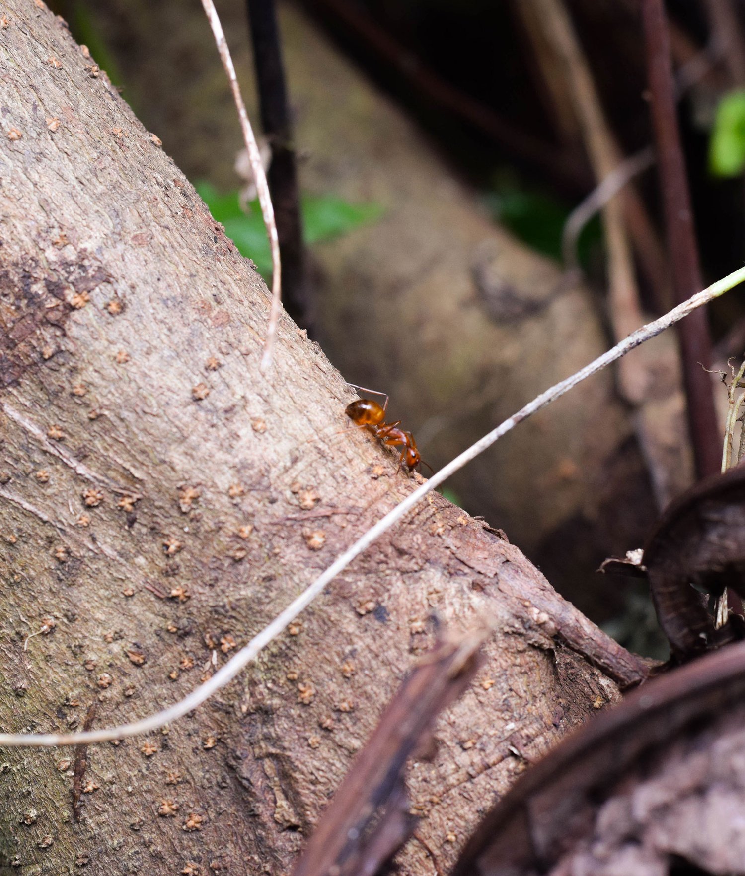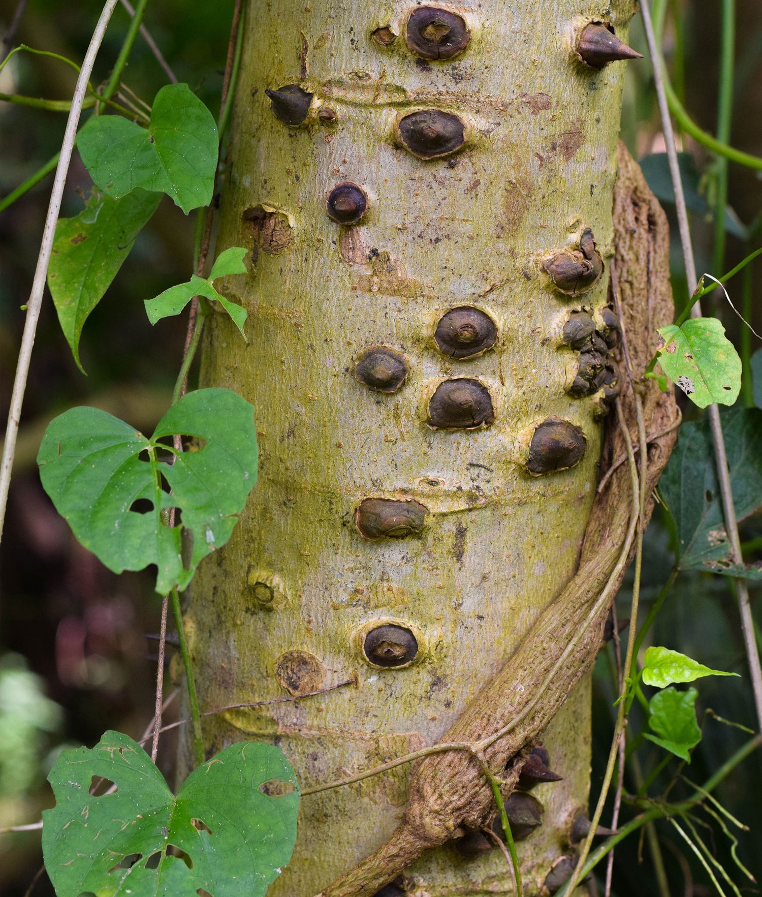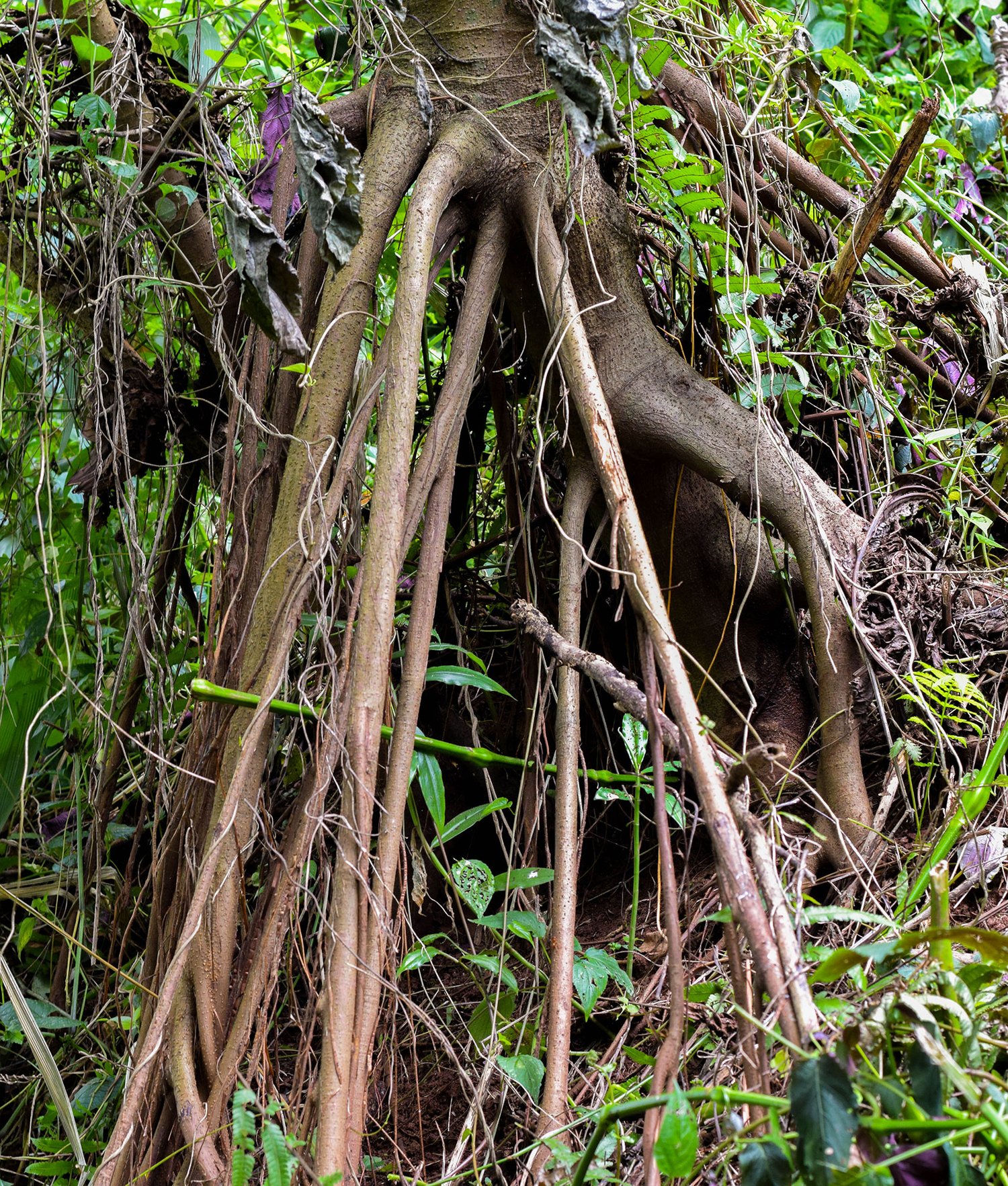 The canopy is covered in 70% of the forest and weeds still exist on the forest floor indicating that the sun continues to penetrate. The presence of vines (not planted) have been noted, along with thorns (defence mechanism) and adventitious roots (to increase feeding surface area) on some tree trunks; these are all positive indicators of self-reliant forest ecosystems.