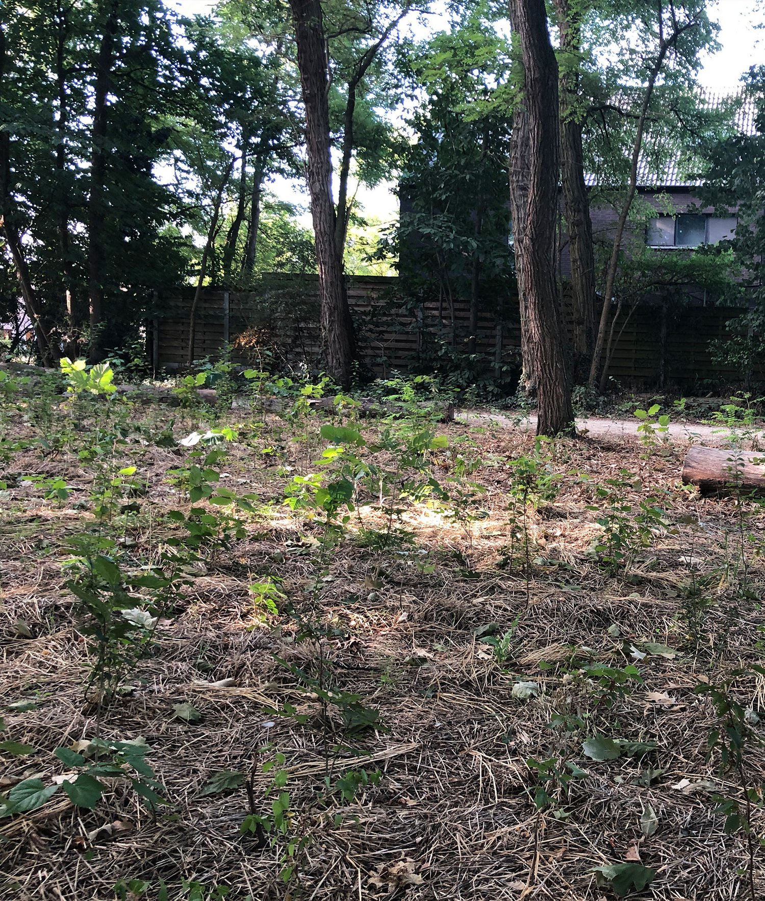 Car Park Forest is growing very nicely, despite the drought during it first summer. The new trees are nicely sheltered by the large trees already present, which we think has contributed to the high survival rate. The forest was also watered once by the municipality.