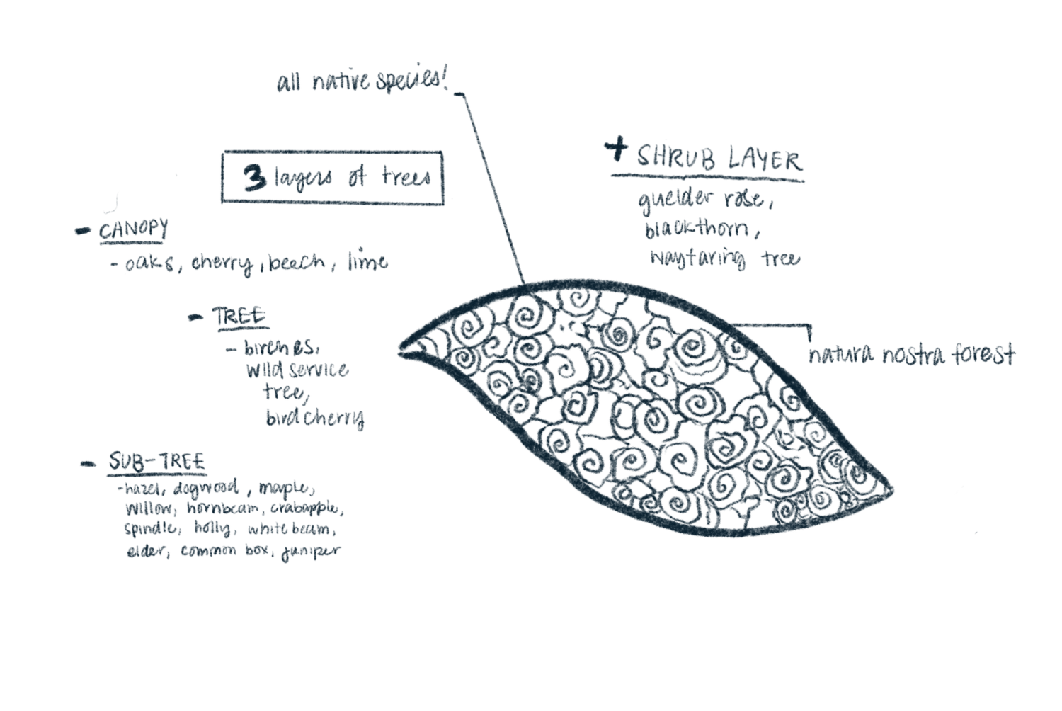 Natura Nostra Forest will create a tranquil and restorative spot for neighbours and offer the chance to see the return of biodiversity in action. This pocket of forest makes accessible the physical and mental wellbeing benefits of close-contact with nature. It is hoped the space will cultivate community bonds and become a recognised source of joy for all.