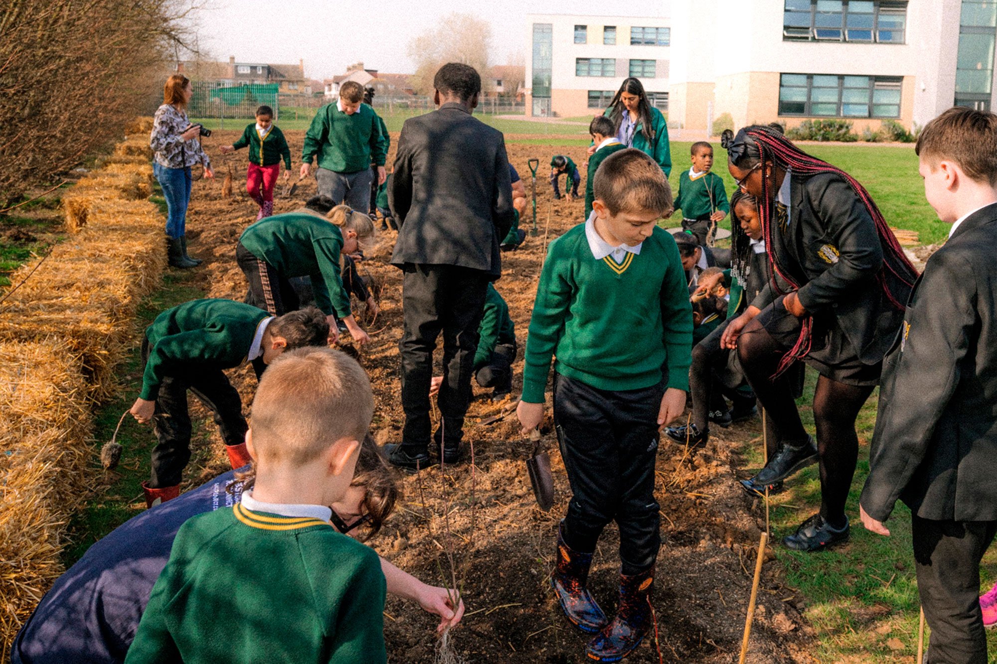 Students observe rewilding in progress and exploration of the forest will supplement the studies of both primary and secondary pupils. The dense planting of native trees will also help to reduce pollution in the air, creating a healthier atmosphere for the entire school community.