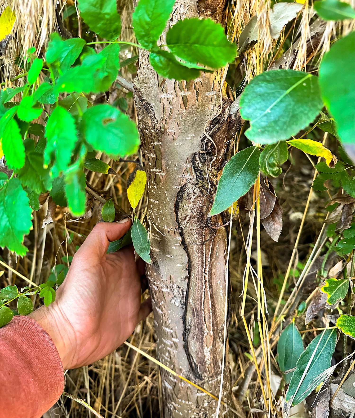 Root growth of one of the Chokecherry trees (Prunus virginiana) was observed by chance when a pathway was being created. Roots of approximately 100cm observed, it is rare to see the root system successfully developing like this.