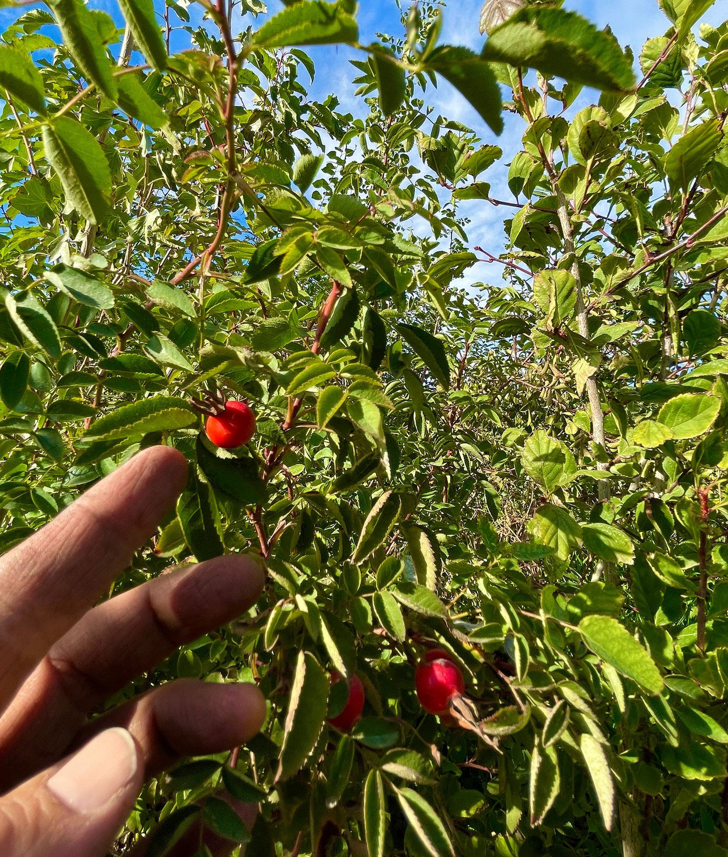 Food and medicine production exceeded expectations for wild strawberries (Fragaria vesca), elderberries (Sambucus nigra), chokecherries (Prunus virginiana) and serviceberries (Amelanchier alnifolia). Wild rose hips are also abundant. Most of the berries have been eaten by copious bird population and unidentified mammals.