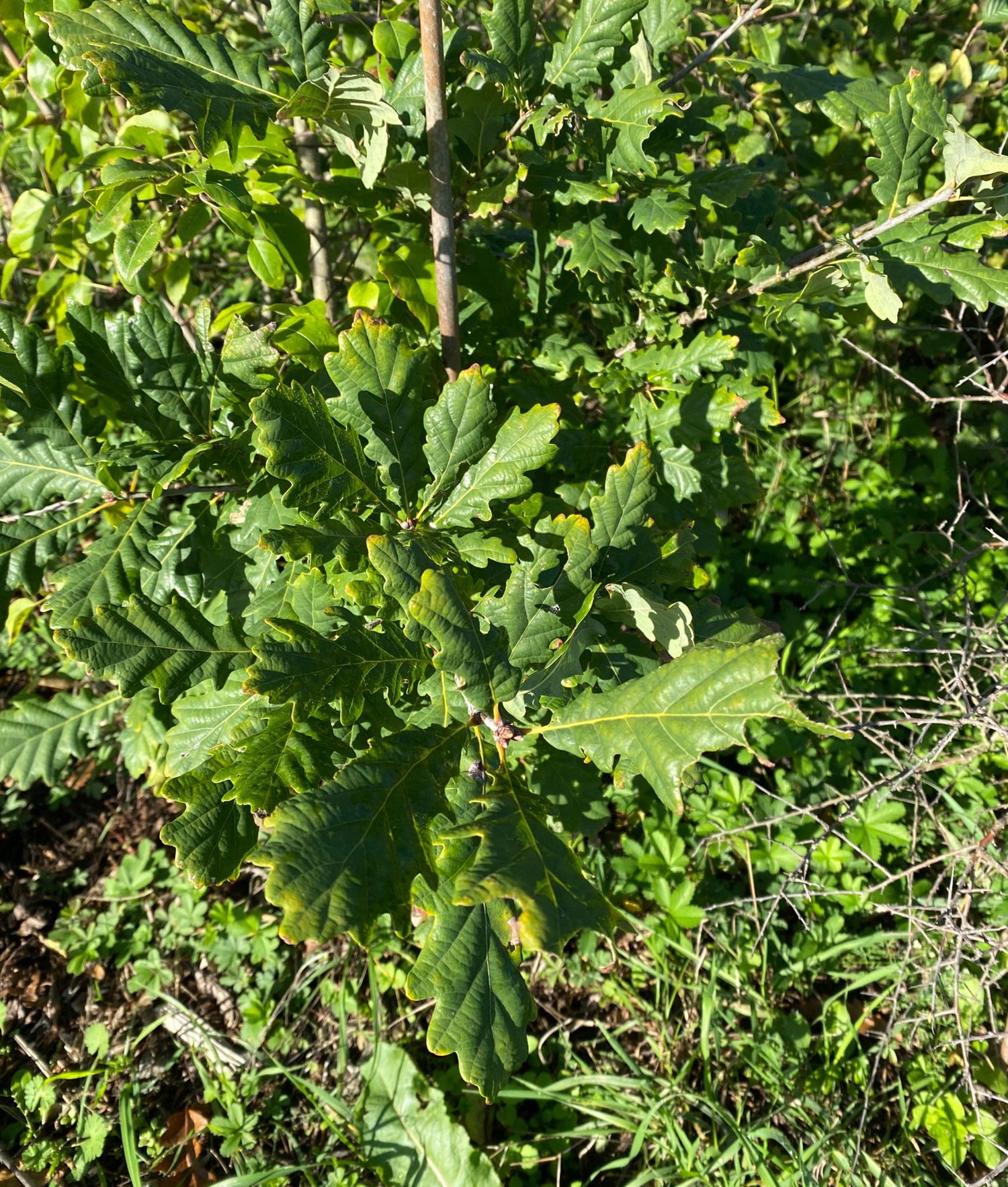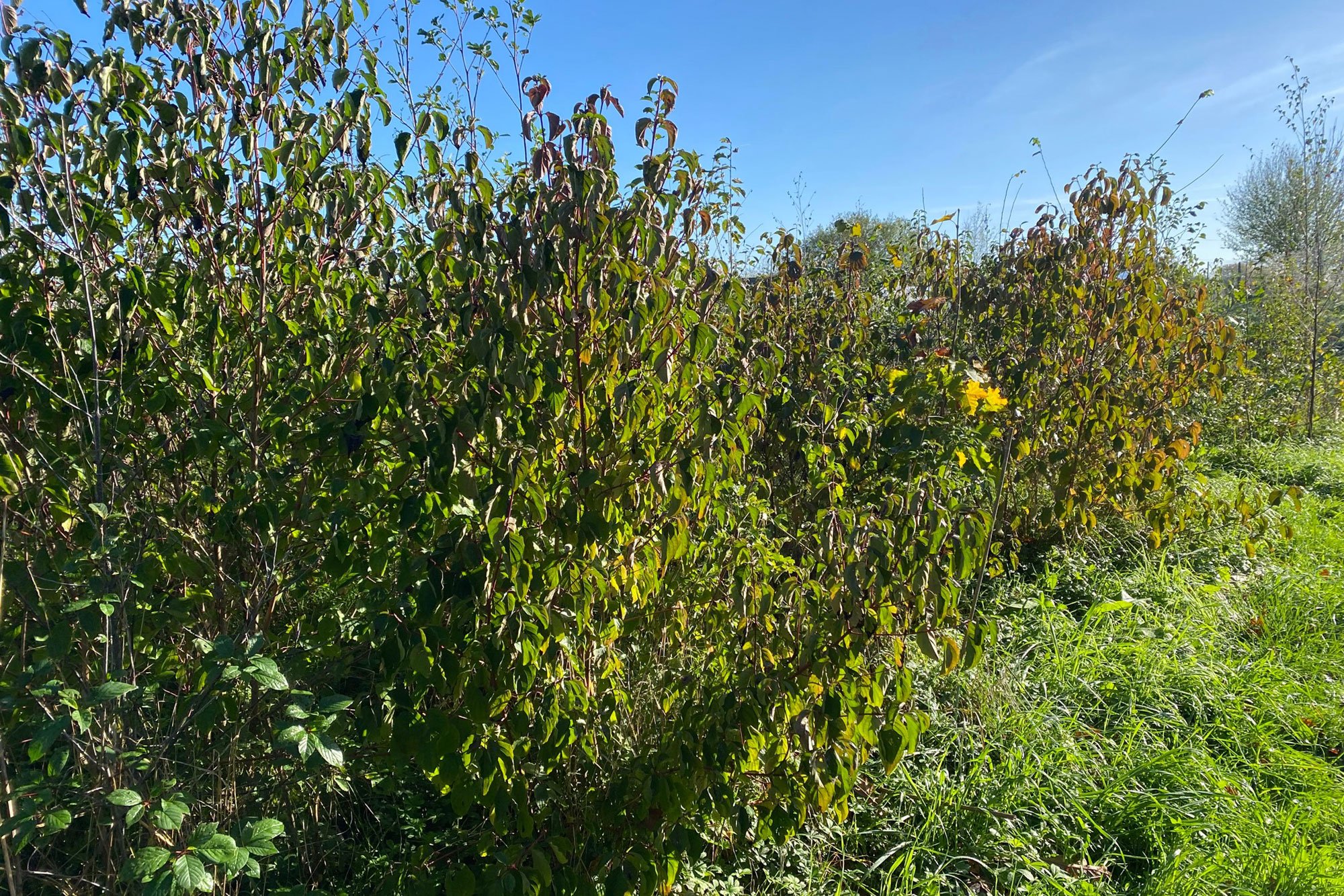 This pocket forest is doing very well overall. As all European projects, it has been impacted on by the summer drought and experiencing relatively early fall of leaves this year as a result. The buckthorn (Rhamnus cathartica) on the edge of the forest seems to be the species that has suffered the most from the scorching summer. However, encouragingly, regrowth has been observed on many dried-looking plants.