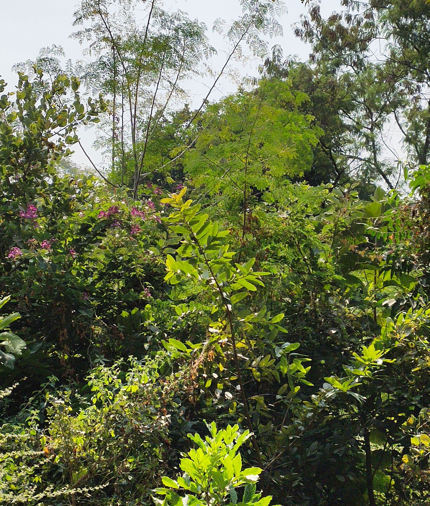 Several species of butterfly continue to make a home in this forest: the Striped Tiger (Danaus genutia), Great Eggfly (Hypolimnas bolina), Chocolate Pansy (Junonia iphita), Lemon Pansy (Junonia lemonias) and Common Bushbrown (Mycalesis perseus). Purple-rumped sunbirds (Leptocoma zeylonica) are also regularly seen in the forest. Various plants are flowering beautifully, including the Cypress vine (Ipomoea quamoclit) and orchid tree (Bauhinia variegata).