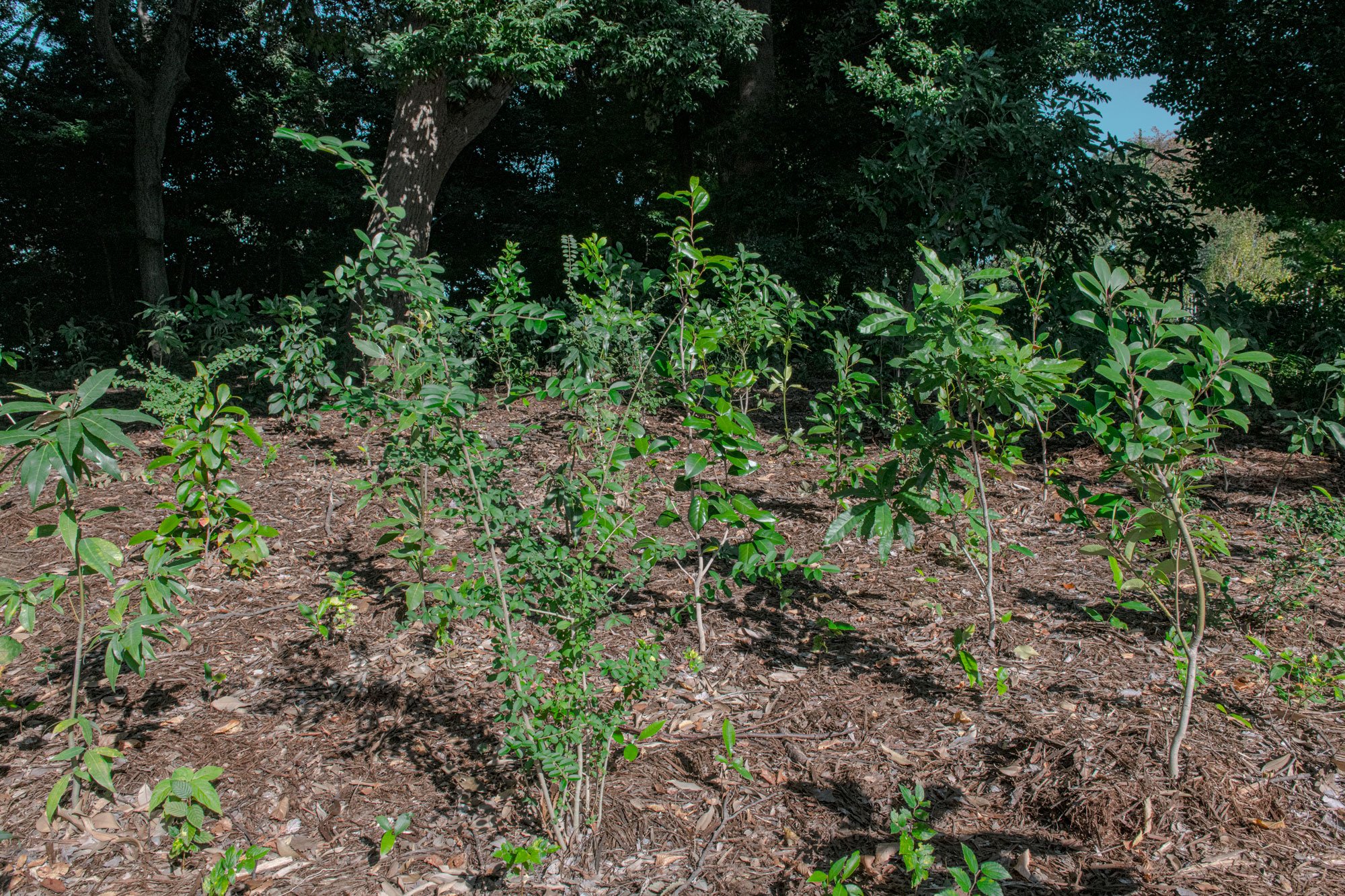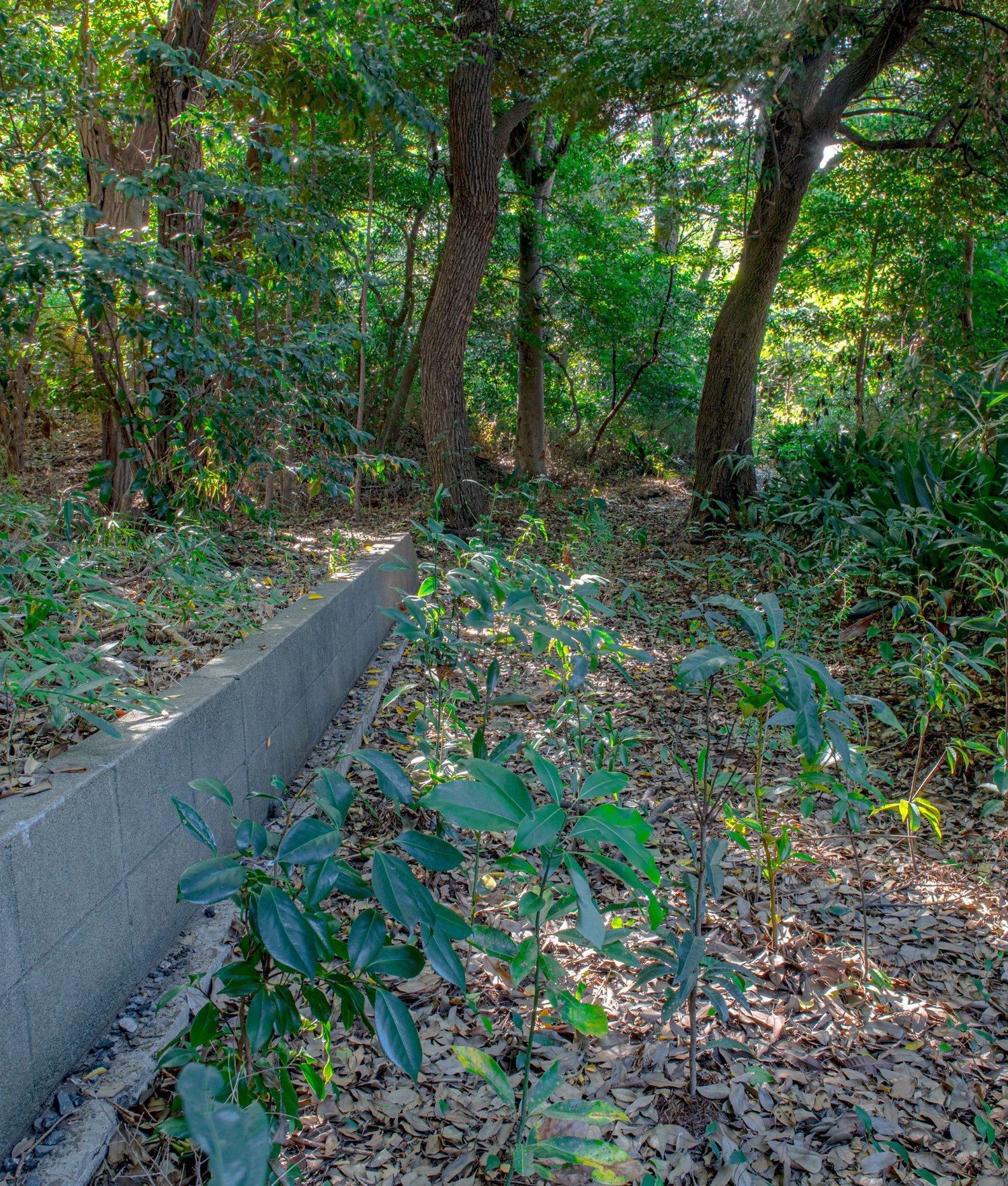 There is steady growth within this pocket forest. Since the planting site is surrounded by the shrine forest it is shaded and does not receive much direct sunlight. This has meant that the growth rate is slower than with many Miyawaki forests, but the survival rate is excellent. These observations indicate that planting shade-tolerant species was the right selection for the area and that this will be a resilient pocket forest in the future, preventing aridification and the associated risk of landslides in the area.