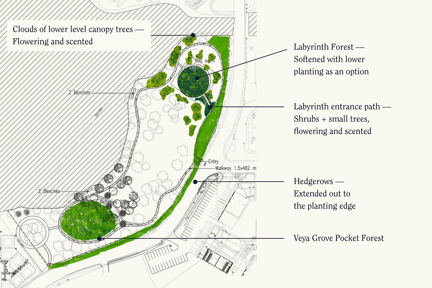 Veya Grove aims to create a sustainable and biodiverse pocket forest of 400 square meters and features 1,434 trees comprising 76 native species.